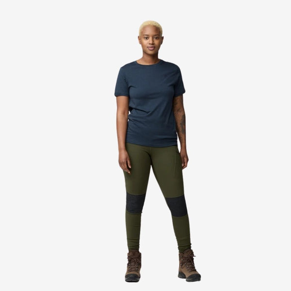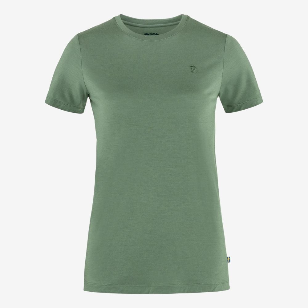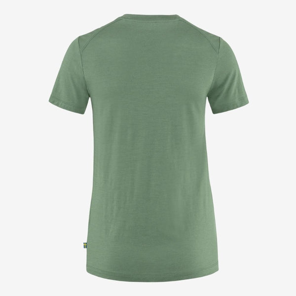 Fjällräven Women's Abisko Wool T-Shirt is a light merino/poly tee that balances cool-when-hot, warm-when-cold comfort, naturally resists odour, and dries fast for long days on the trail.