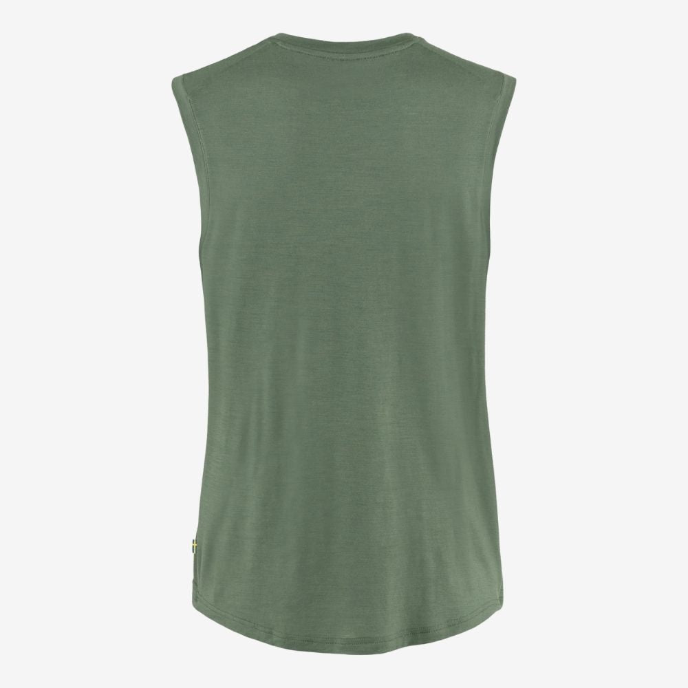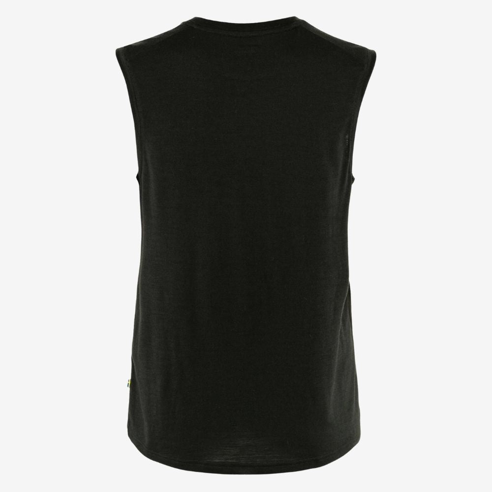Fjällräven Women's Abisko Wool Tank Top blends merino’s cool-when-hot, warm-when-cool comfort with quick-dry polyester; wide shoulders reduce pack-strap rub and a drop-tail hem adds coverage on the trail.