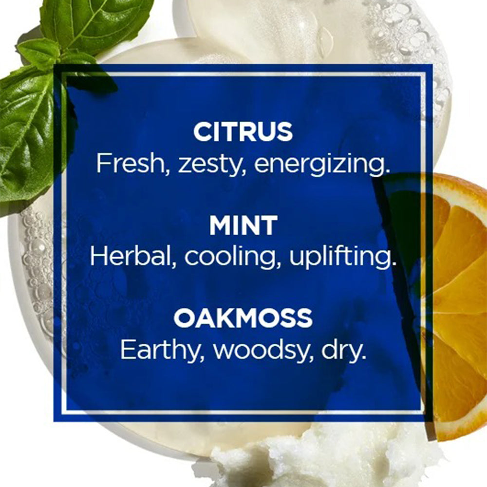 All-in-one cleanser with citrus, mint, and oakmoss that removes dirt and sweat while leaving skin and hair fresh, soft, and healthy.