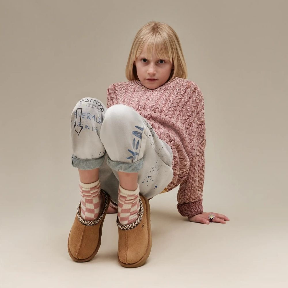 Kids' Tasman II Slipper is a slip-on clog for home or out—suede upper with the signature UGGbraid, plush 17 mm UGGplush™ lining, and a lightweight SugarSole™ or Treadlite by UGG™ outsole.