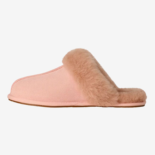 Women's Scuffette II is a cozy slip-on house slipper in soft suede with plush sheepskin inside and a light rubber outsole for easy steps around home.