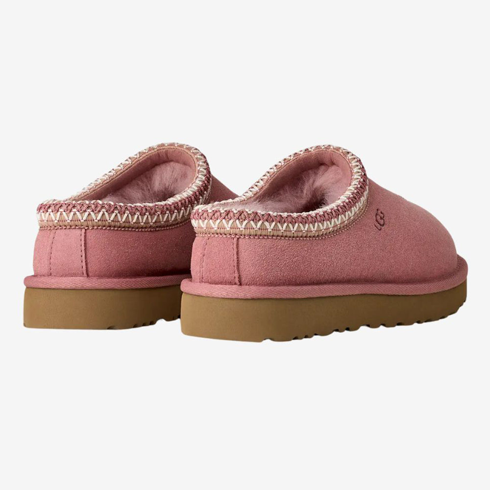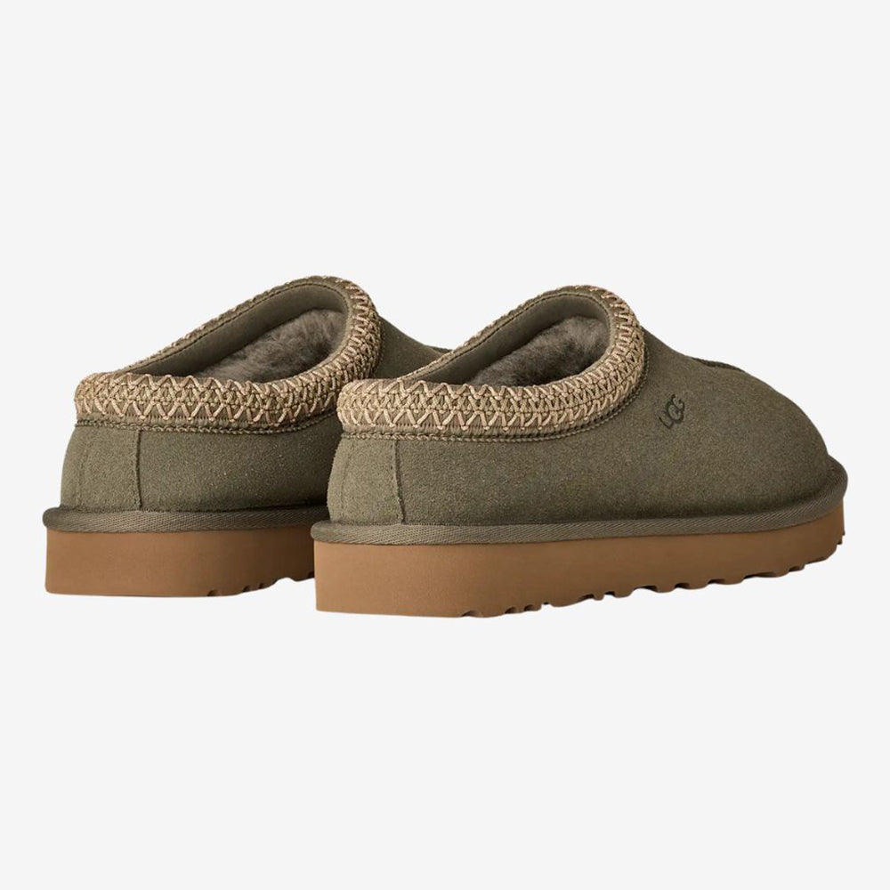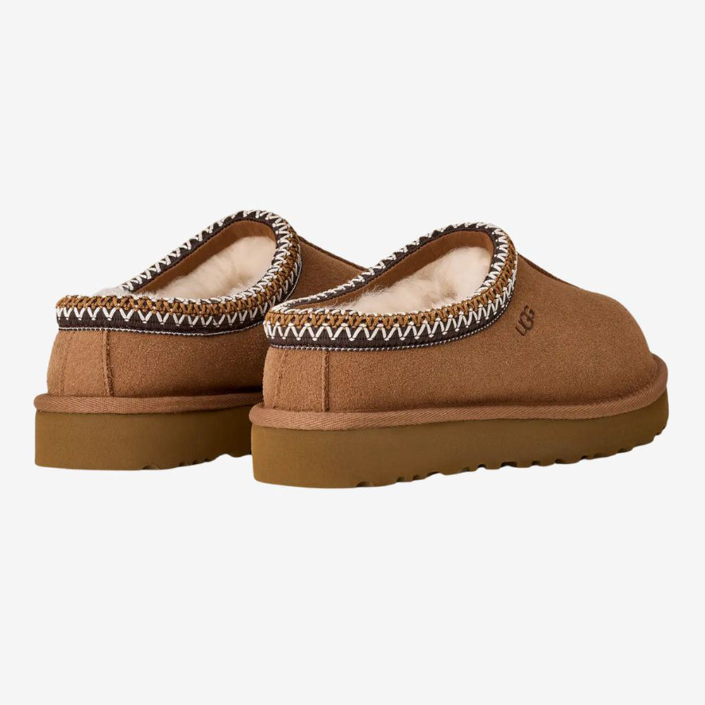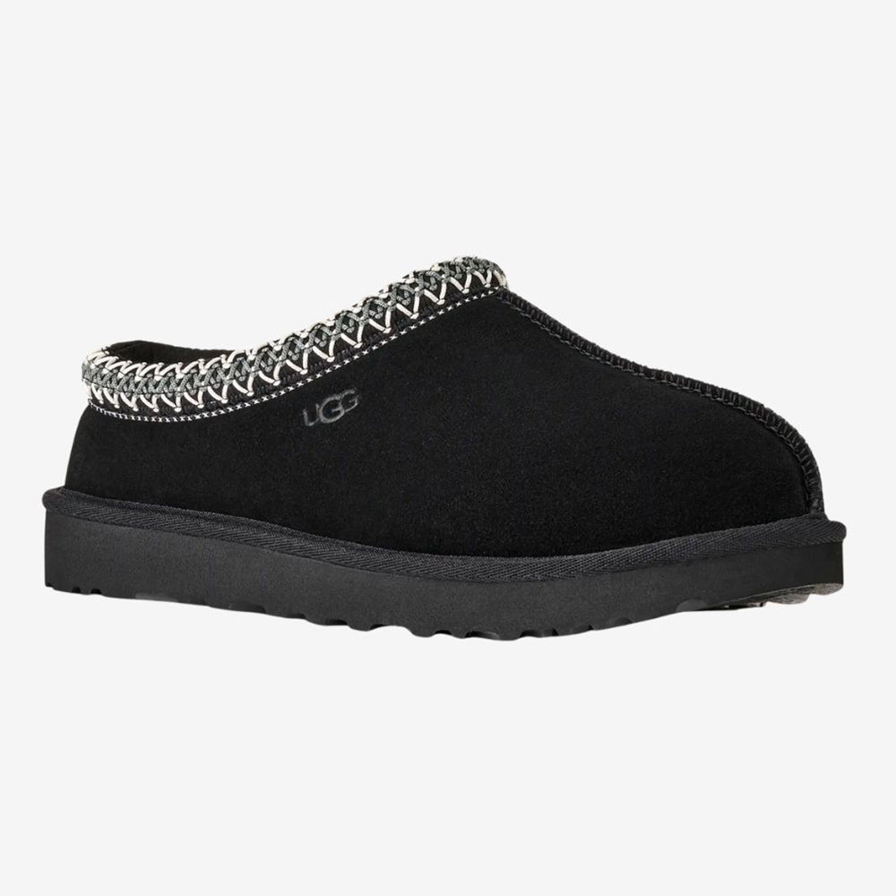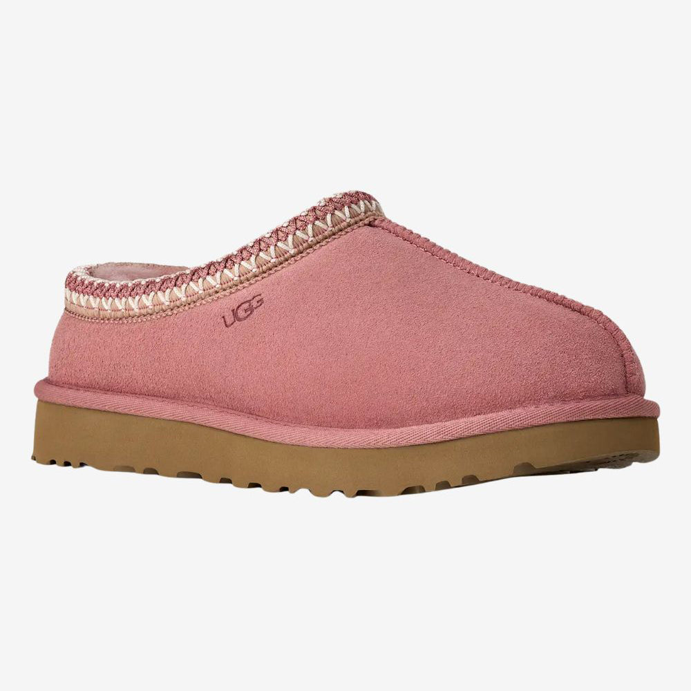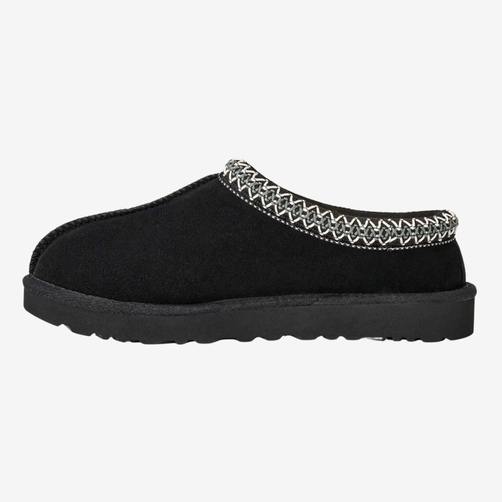 UGG Tasman II (women’s) keeps the iconic slip-on feel with a suede upper, signature UGGbraid collar, plush sheepskin inside, and a soft sugarcane-EVA sole for indoor/outdoor comfort.